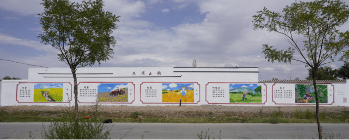 河西走廊地区七月的每天都是炎炎烈日,紫外线强到让人难以忍受,气温最高时竟有三十八度,时而也出现漫天黄沙的沙尘暴和阴雨阵雨等恶劣天气。团队中有部分学生来自南方,有些同学极不适应当地的干燥的气候条件,但无论如何,同学们心中始终惦念着要圆满完成任务,始终没有停下手中的画笔。各小组成员以浓厚的爱国情怀和坚定不移的精神穿行在祖国镍都金昌的各村镇中,为振兴乡村挥洒着汗水。经过为期一周的努力,墙绘工作圆满结束。画笔丹青绘制的不仅是美丽乡村的图景,更是同学们挥汗如雨的艰辛;景观营造的不仅是美好人居,更是同学们心中的激情与热忱!