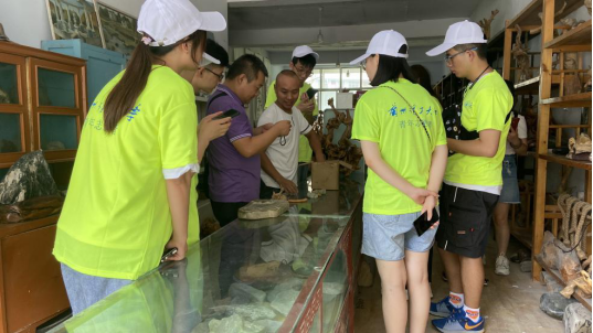 7月27日,团队抵达陇南艺海巨匠文化艺术有限公司。经由张兴海先生介绍,了解木雕、石雕、紫泥文化。张兴海先生工作室中呈列着砚台、崖柏、木雕根艺、奇石、紫袍玉等工艺品,其主要制作木雕及栗玉砚。木雕作品承袭明清木雕技艺:风格古雅、结构优美、题材多样,具有鲜明的地方特色。