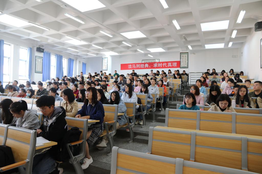 马克思主义学院杨莉教授带领师生们从毛泽东生平、写作背景、主要内容与文本结构、语言特点等四个方面系统解读了毛泽东的《改造我们的学习》这部著作,让师生们感受到,学习的起点和归宿都在于联系实际,要立足中国实践,面向中国问题,提出中国方案。