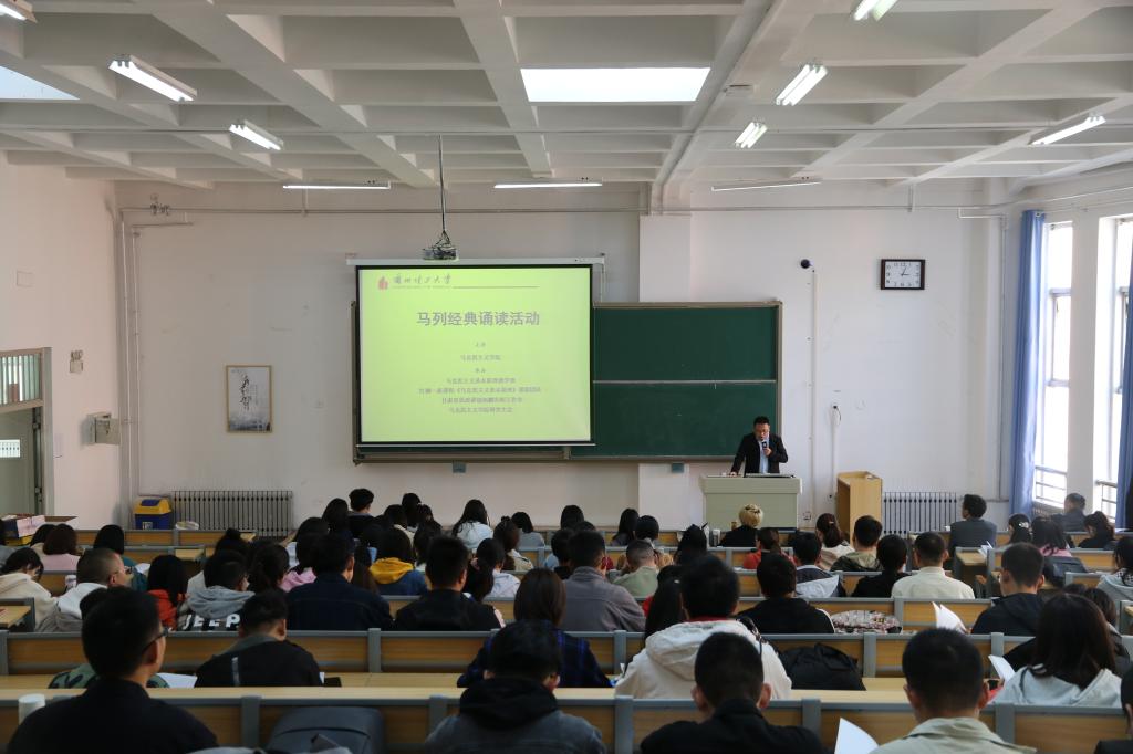 习近平总书记在庆祝中国共产党成立100周年大会上的讲话中指出,“中国共产党为什么能,中国特色社会主义为什么好,归根到底是因为马克思主义行”为了使师生更深刻理解“马克思主义为什么行”,学深悟透弄通马克思主义理论,兰州理工大学马克思主义学院于10月10号举办了第五届马列经典诵读活动,活动由史俊杰博士主持,马克思主义学院部分教师、一二年级全体研究生以及其他学院学生参与了本次活动。