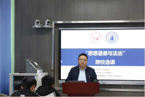 10月14日,甘肃省《思想道德与法治》课跨校选课启动仪式暨首场授课在我校彭家坪校区隆重举行。参与跨校选课的兰州大学、西北民族大学、西北师范大学、兰州理工大学等10所高校共600余名师生线上参加,我校马克思主义学院师生代表、思政课程班学生等现场参加。启动仪式由甘肃省思政课教指委“思想道德与法治”分教指委副主任兼秘书长、我校马克思主义学院院长饶旭鹏教授主持。