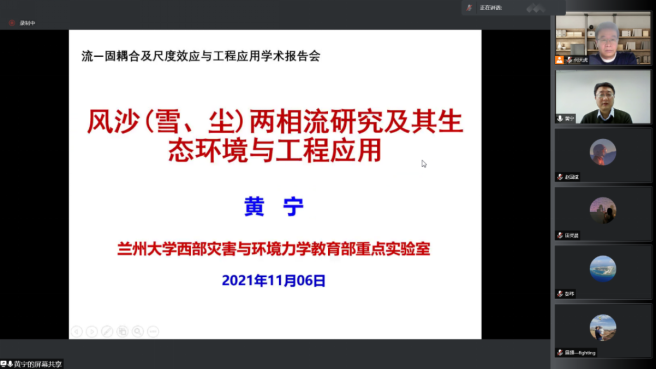 11月6日,理学院成功举办了主题为“流-固耦合及尺度效应研究与工程应用”的线上学术研讨会。会议邀请兰州大学土木工程与力学学院院长、西部灾害与环境力学教育部重点实验室主任黄宁教授做了特邀报告,兰州交通大学史拴虎副教授以及我校青年教师王鹏博士做了主题报告。来自兰州大学、兰州理工大学、兰州交通大学等高校的师生30余人参加了本次线上研讨会。