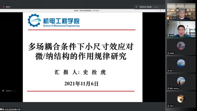 兰州交通大学史拴虎副教授作了题为《多场耦合条件下小尺寸效应对微/纳结构行为的作用规律研究》的学术报告,介绍了微/纳谐振器在考虑热松弛、表面效应、非局部效应等影响因素下有关热弹阻尼的研究进展,相关成果为设计和优化具有高品质因子的微/纳谐振器提供了理论支撑。
