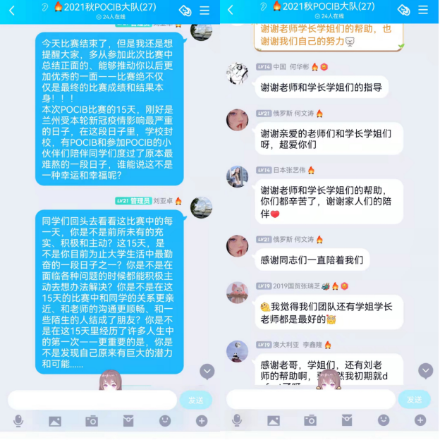 另外,在此次比赛中,我们三位老师除了指导学生比赛的专业问题以外,更多地扮演着鼓励、开导、陪伴和帮助的角色——比赛第3-8天的时候,是比赛问题最多,也是学生们最容易动摇的时候。此时我们除了及时跟学生沟通,知道学生的问题并帮助学生们解决遇到的比赛问题外,还要做好学生因比赛遇到困难而沮丧、因新冠疫情的不确定性而焦虑等心理疏导工作。