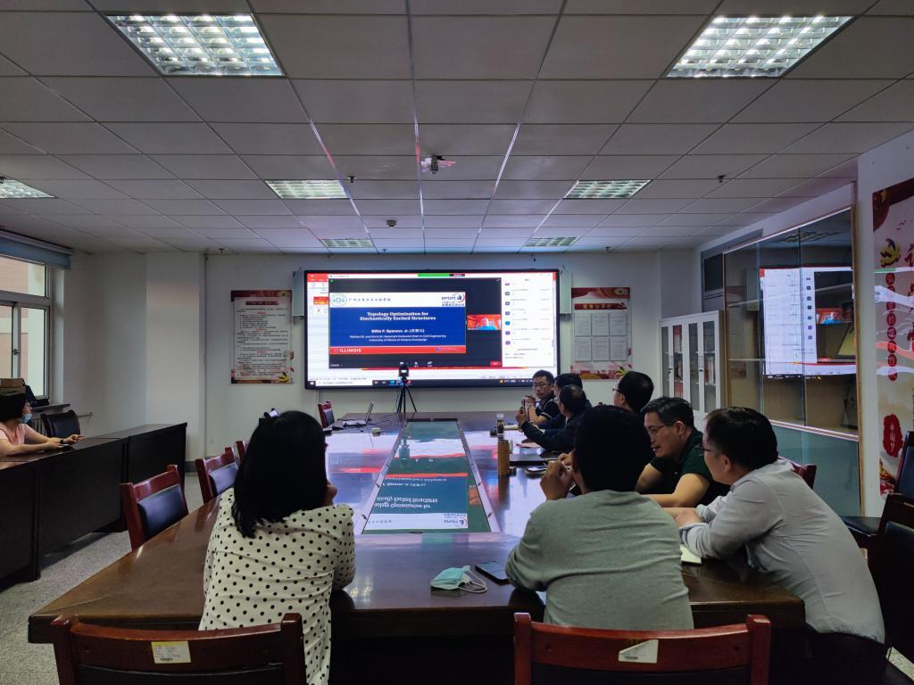 2022年5月31日,美国伊利诺伊大学尚佩恩校区(UIUC)土木与环境工程首席教授、中国工程院外籍院士Billie F Spencer, Jr博士做了题为“随机动力荷载作用下的结构拓扑优化(Topology optimization of structures subjected to stochastic dynamic loads)”的线上学术报告,这是我校土木工程防灾减灾研究团队为配合第十四个国家防灾减灾日而组织的西部地区系列科普学术活动的最后一场讲座。Spencer院士报告从结构拓扑优化的学术背景出发,分别介绍了基于静力、动力和随机荷载的结构拓扑优化建模、算法与程序,以及在地震、风和车辆交通荷载等不同输入条件下的优化应用算例,对我校相关研究团队有很积极的思维启发作用。本次报告会由兰州理工大学和广州大学共同举办,在兰州理工大学、广州大学和美国UIUC分别设立了线下主会场和多个教师、学生分会场。我校防震减灾研究所所长杜永峰教授和广州大学土木工程系主任于志伟博士担任联席主持人。甘肃省土建学会教育工作委员会主任委员、兰州理工大学人事处处长韩建平教授、省土建学会教育工作委员会秘书长、兰州理工大学土木工程学院院长王文达教授、省土建学会国际交流部秘书长、西部土木工程减隔震行业技术中心副主任程选生教授、兰州理工大学土木工程学院副院长李万润教授、校防震减灾研究所振动舒适度方向负责人朱前坤教授等省减隔震国际合作基地管理团队成员和我校土木工程学科研究生代表共100余人参加了报告会,来自广州大学、北京工业大学、大连理工大学、东南大学、哈尔滨工业大学深圳研究生院等高校的师生和西部部分设计院、研究机构的学者200余人线上参会。报告会前,韩建平教授代表我校土木学科简短致辞,对Spencer院士和国内外专家参加活动表示欢迎。王文达教授代表我校土木工程学院做简要总结,感谢专家们对我校土木工程院学科建设工作的支持。
