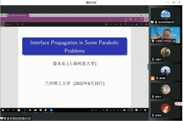 娄本东教授的报告深入浅出,以很具象化的例子为与会者介绍了对部分抛物问题中出现的界面进行介绍,首先介绍了反应扩散方程中的行波相关领域的工作,引入了传播现象的一些基本概念,然后又介绍了反应扩散方程中的Stefan自由边界问题,以生动的例子介绍了自由边界对空间传播现象的影响;接着又介绍了渗流方程中的自由边界问题相关领域的工作,强调了由于渗流方程的退化性会对扩散产生一种自主的边界;最后介绍了直接建立在曲率流上的反应扩散方程传播现象的相关工作,并以平均曲率流为例,结合具体模型讲解了特殊的非均匀性界面传播的影响,特别是广义行波解和广义自相似解的概念。