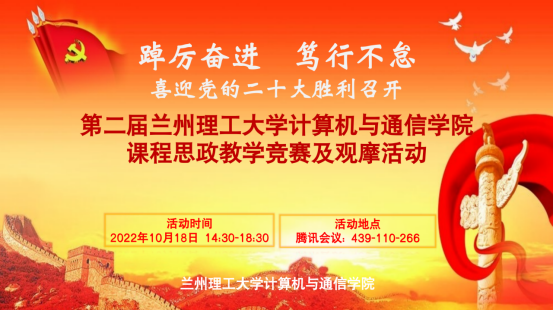 在党的二十大胜利召开之际,为落实立德树人根本任务,不断加强课程思政内涵建设,引领广大教师实现“知识传授”和“价值引领”有机统一,10月18日下午,计算机与通信学院通过腾讯会议平台,以主题党日活动的形式举行了2022年院级“课程思政教学竞赛”。来自全院各系部的7名教师参加了此次教学竞赛。经过激烈角逐,张明虎、张墨逸两位教师脱颖而出,将代表学院参加学校比赛。