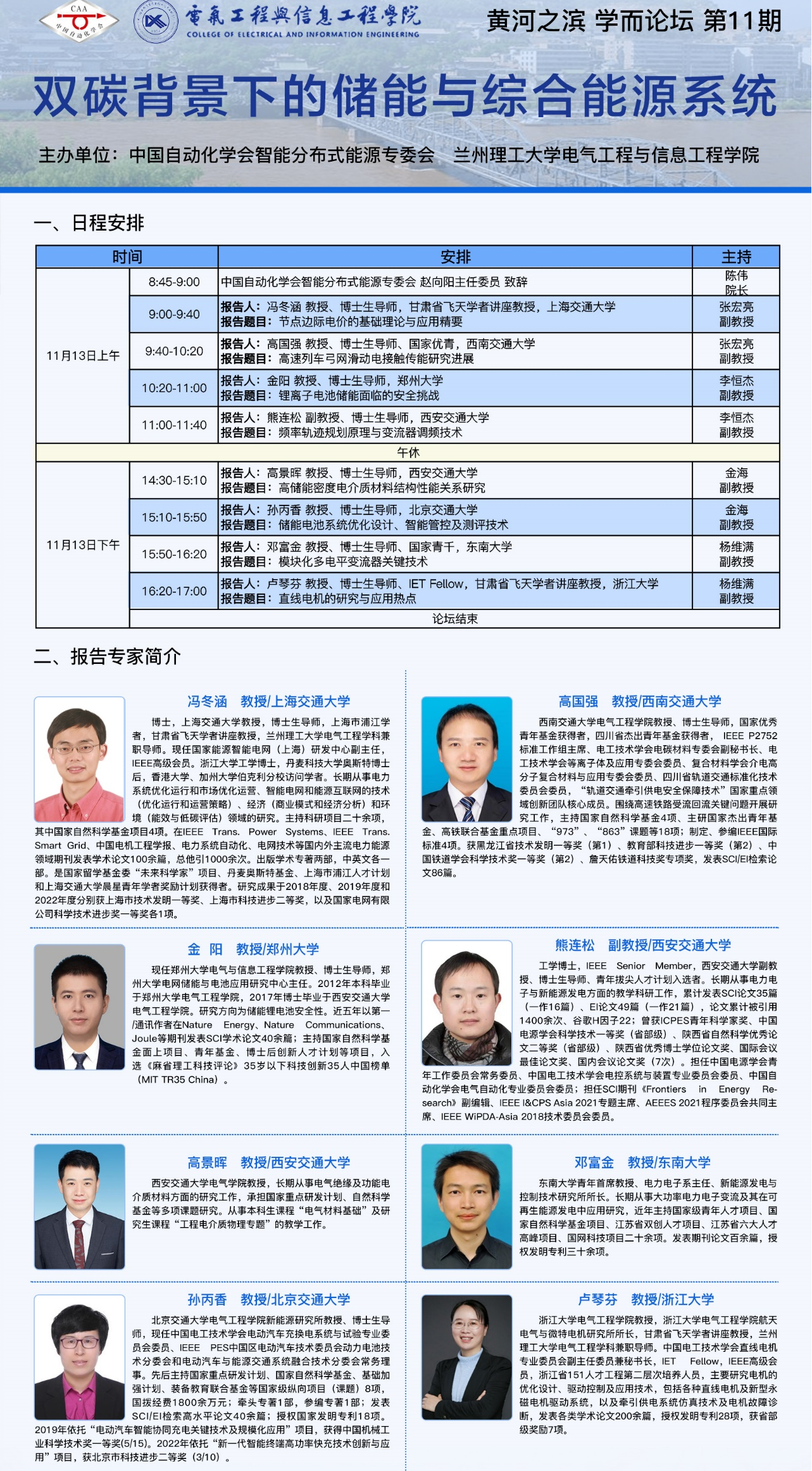 电气工程、控制科学与工程等相关学科的近200人师生参加了此次学术论坛。会议期间,各位专家学者和参会师生线上进行了充分地交流和互动,会议气氛热烈。各位教授的报告由浅入深、图文并茂、内容丰富,紧扣国家能源发展战略,深受参会师生们的欢迎。此次报告会不仅扩宽了参会师生的视野,激发了创新热情,还对电信学院人才培养、科学研究、学科建设起到了积极的推动作用。(撰稿:王虹;终审:王玲)