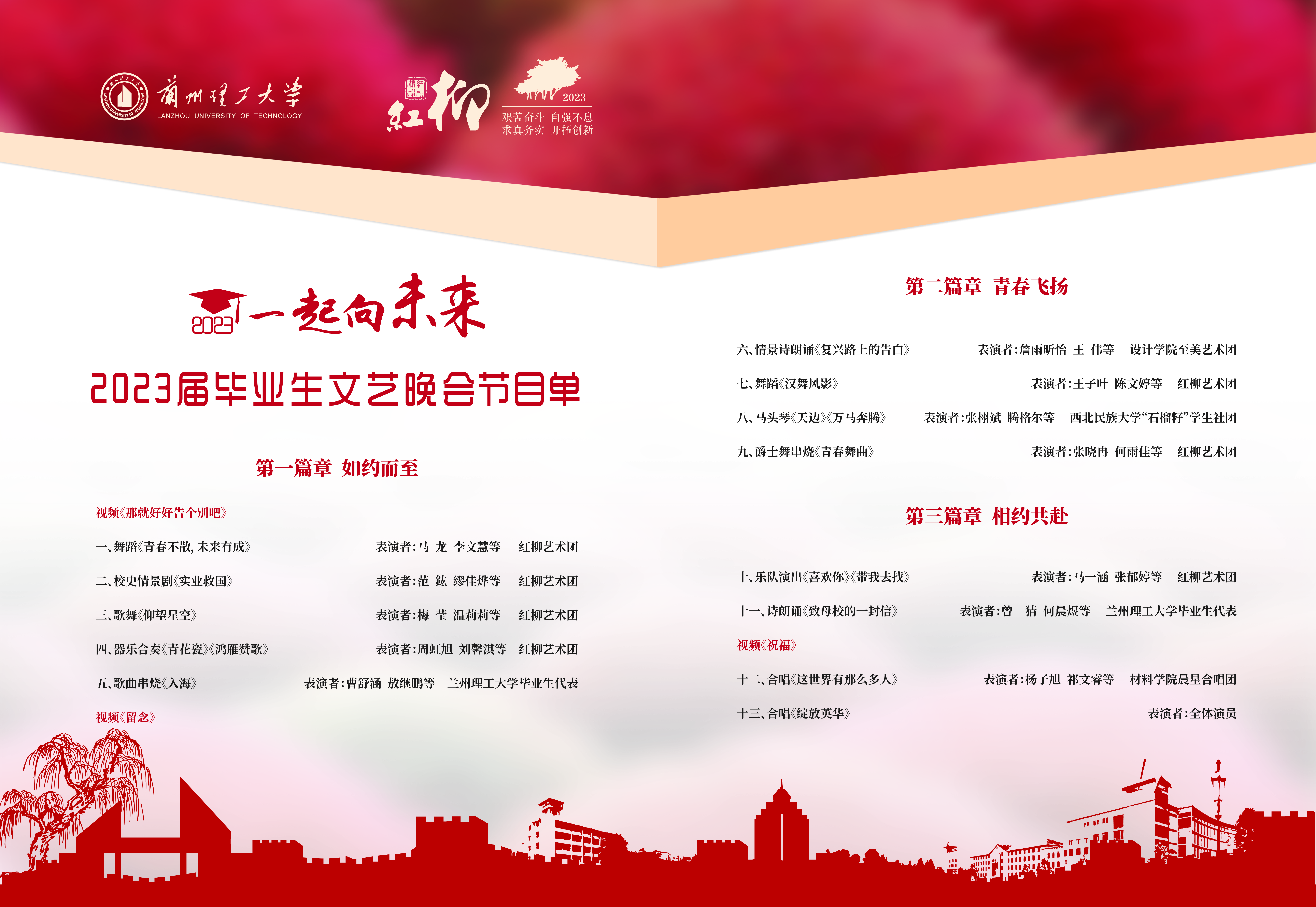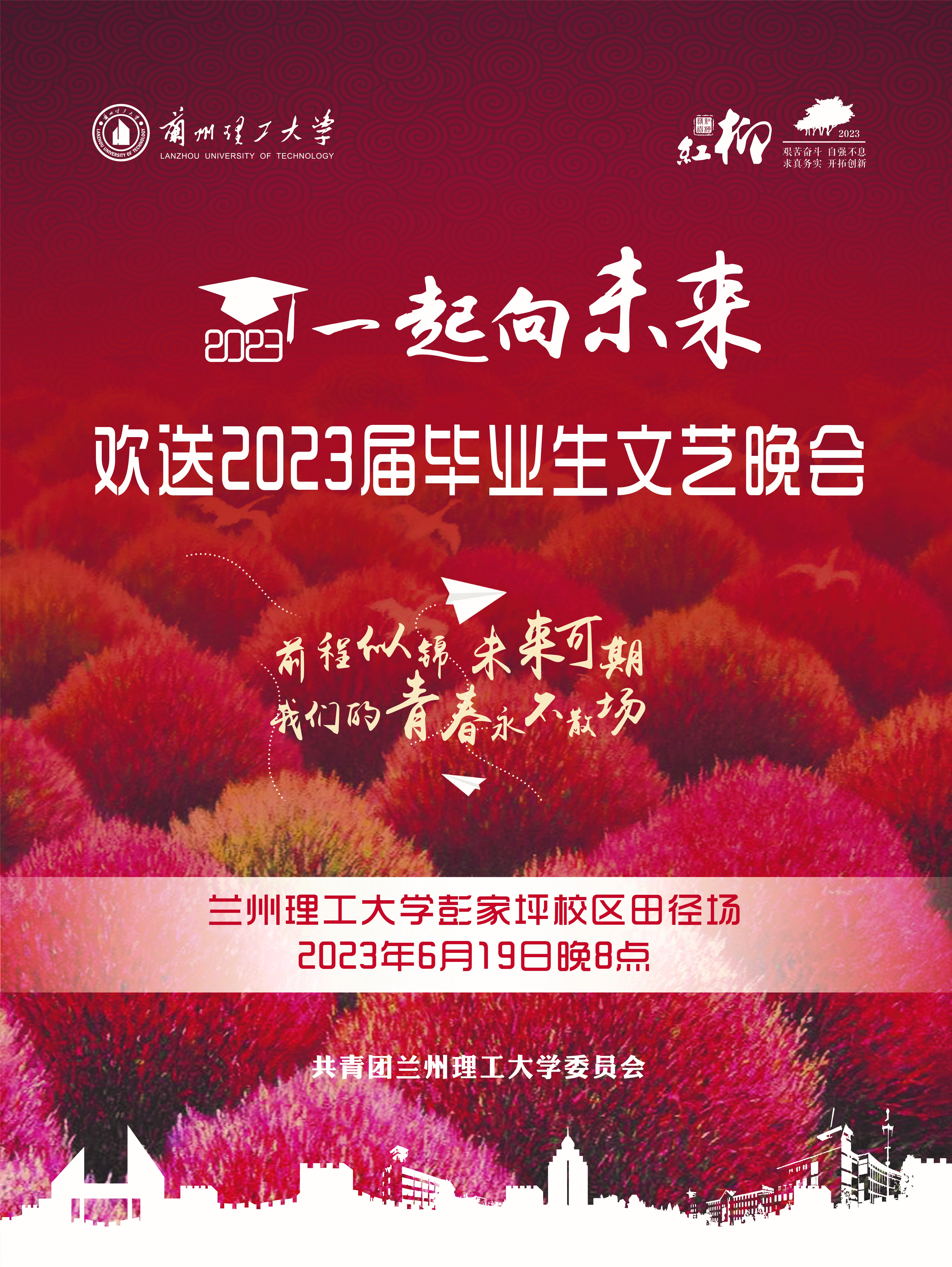 为欢送2023届毕业生,营造依依惜别的氛围,学校定于2023年6月19日晚举办“一起向未来”欢送2023届毕业生文艺晚会,诚邀老师、同学们观看。