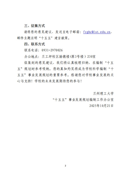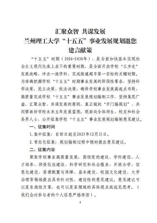 汇聚众智 共谋发展 兰州理工大学“十五五”事业发展规划邀您建言献策