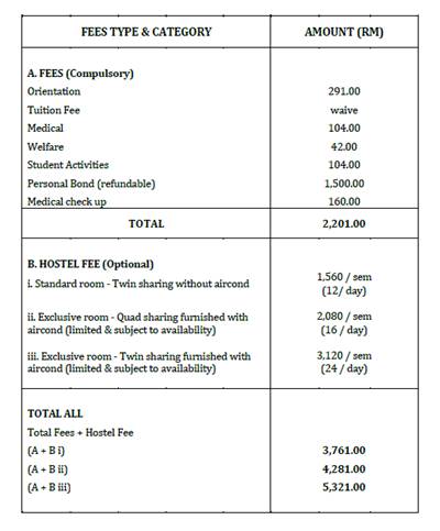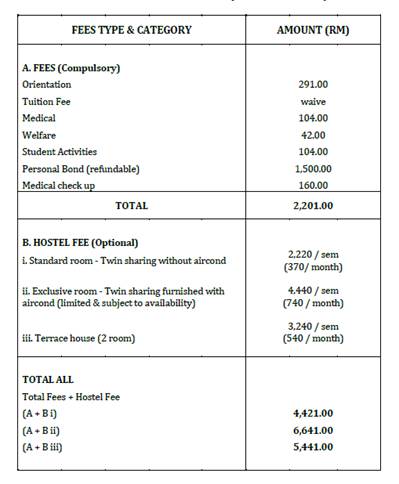 *以大学当学期交流生收费通知为准,大学有权在不通知的情况下变更费用