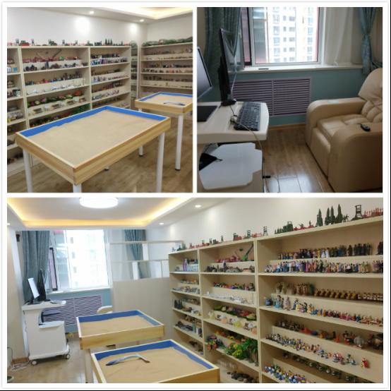 沙盘放松室分为沙盘区和放松区。沙盘区内配有沙盘器材,来访者可以按照自我的意愿选择沙具,在“自由、安全、保护、共情”的环境中通过游戏给予调节治疗;放松区配有智能身心反馈系统,身心反馈系统基于身心反馈原理,系统制定多种反馈训练方案及多种放松练习,可以帮助使用者通过训练学会调节生理机能及控制情绪状态,从而达到心理、肌体放松和防治身心疾病的目的。