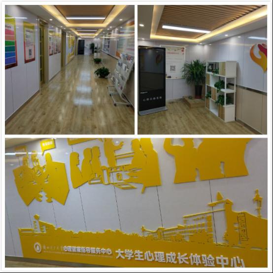 新建成的心理健康体验中心位于大学生活动中心五楼,占地100平米,设有团体辅导室、个体咨询室、沙盘放松室和心灵长廊等功能场地。各功能室相对独立、符合心理咨询标准,同时突出了心理自助性和体验性。