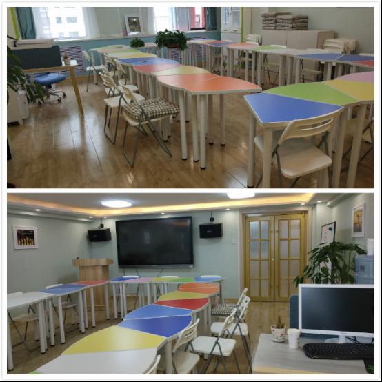 团体辅导室内配有团体辅导桌椅、团体辅导设备和交互智能平板等设备,兼具心理活动课教室和团体辅导的功能,可以同时满足开展团体心理辅导活动和开展心理教学研讨、讲座、沙龙等的需求。