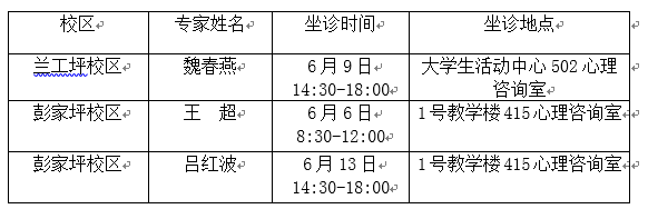 为了更好地满足我校师生对心理咨询服务的需求,学校心理健康指导服务中心在2022年春季学期继续开通校医合作绿色通道,兰州市第三人民医院3名精神科医生将每月来我校心理健康中心坐诊,开展心理健康筛查、评估与诊疗工作。六月份坐诊安排如下: