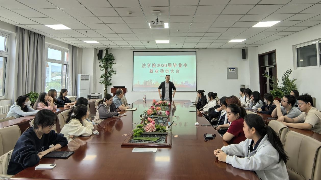 为给毕业生提供实用的求职技巧,明确其未来发展方向,9月26日,法学院召开2026届毕业生就业考研动员大会。法学院党委书记孔德瑞,就业指导中心苗军老师,2026届应届毕业生共同参加。