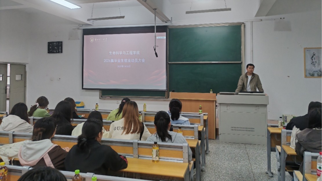 为引导2026届本科毕业生准确把握就业形势,树立积极就业意识,提升就业竞争力,9月26日,生命科学与工程学院组织召开2026届本科毕业生就业动员大会,并举办专题辅导讲座,全面启动新一届毕业生就业工作。学院党委副书记、就业辅导员及2022级全体本科生参加会议。