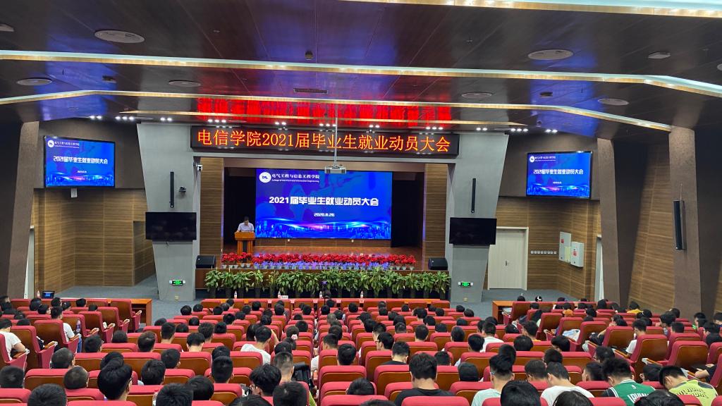 8月26日下午,电信学院在彭家坪校区图书馆106报告厅召开2021届毕业生就业动员大会。学院邀请学校学生就业指导服务中心主任李竹梅开展了《认清形势、抢抓机遇、积极就业》专题讲座。为了落实疫情防控期间工作要求,通过现场直播的方式在观成楼108教室设立分会场,学院610余名本科生毕业生、130名硕士毕业生及全体辅导员参加了活动。会议由学院党委副书记朱毓杰主持。