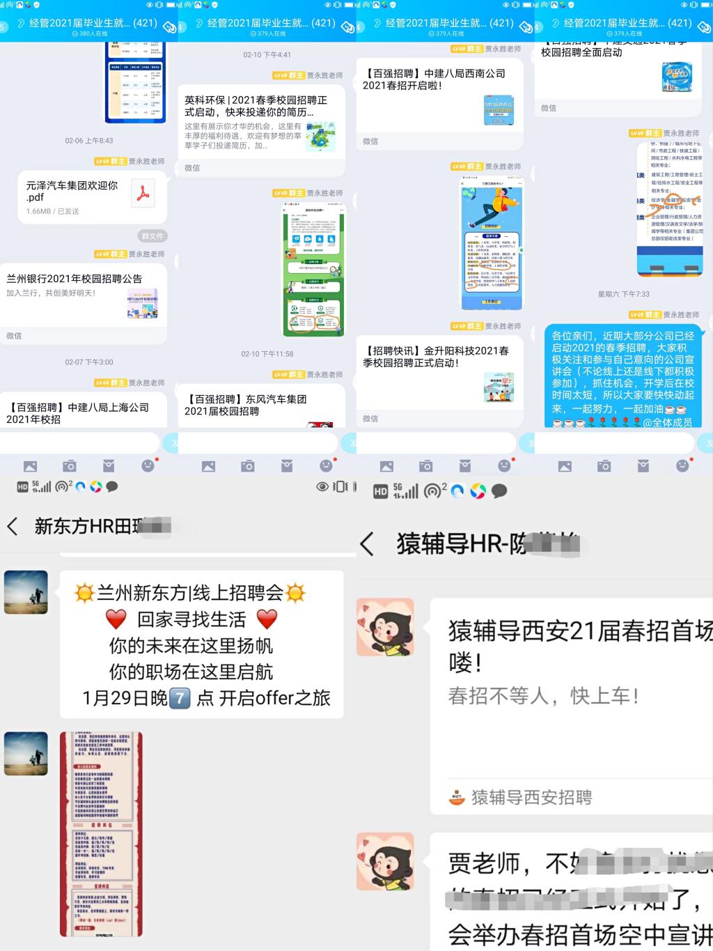 学院通过针对性一对一推荐和学院“经管2021届毕业生就业专属群”为毕业生分享和推荐就业招聘信息100余条。通过“全国高校毕业班辅导员就业工作平台”及时向毕业班学生分享各类就业政策和就业能力提升培训课程,不断提升学生的就业能力和自己的素质。联系学院就业实习基地兰州新东方学校、西安猿辅导学校为教育培训类意向就业学生提供空中宣讲会。多措并用,力促重点群里未就业毕业生就业。