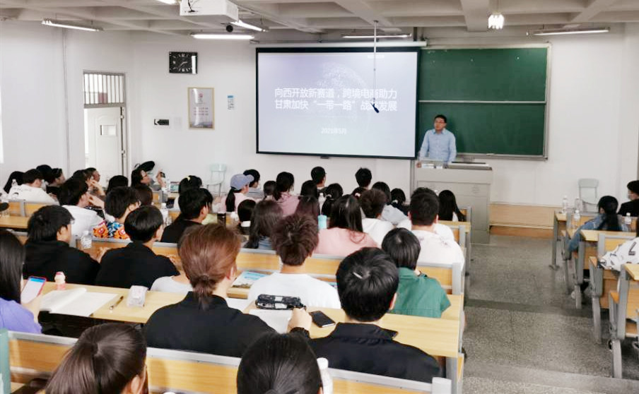 2021年5月18日下午,经济管理学院邀请兰州新区综合保税区开发建设有限公司跨境电商部负责人张原经理做题为《向西开放新赛道,跨境电商助力甘肃加快“一带一路”倡议发展》的专题讲座,学院国际经济与贸易专业同学聆听了讲座。