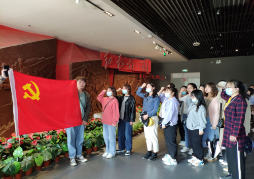 在参观学习过程中,“红色甘肃”展厅展示了在风起云涌的革命年代,甘肃特支的成立、南梁烽火的燃起、陕甘根据地的创建、红军长征胜利会师、西路军的河西鏖战,以及人民解放军的胜利进军等一系列鲜活的革命历史进程,谱写了甘肃各族人民在中国共产党领导下中国社会一步步实现由衰败走向复兴的伟大历史画卷。通过一幅幅珍贵的照片、一件件文物、一段段感人的故事,仿佛把大家的思绪又拉回了那个战火纷争的年代。大家感受到了中国共产党带领广大群众开辟伟业的艰辛路程,参观过程中支部党员对传承我国优秀传统文化、继承红色基因进行了交流探讨。最后,春季学期新入党的同志集体在党旗面前宣誓。