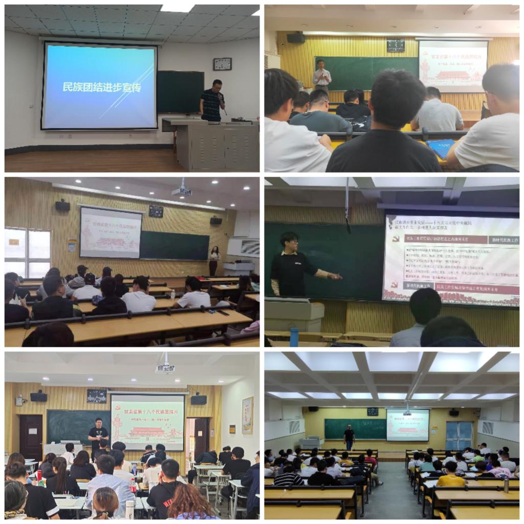 材料学院坚持以习近平新时代中国特色社会主义思想为指导,通过党、团日活动、主题班会、民族政策知识宣讲、民族团结故事分享等形式,深入学习贯彻习近平总书记关于民族工作的重要论述以及在全国民族团结进步表彰大会上的讲话,学习民族团结进步发展历史和民族政策知识,讲述民族团结进步创建工作中的典型案例,深入党支部、班级开展民族团结进步主题教育,在师生群体里铸牢中华民族同体意识,营造出“中华民族一家亲·同心共筑中国梦”的浓厚氛围。
