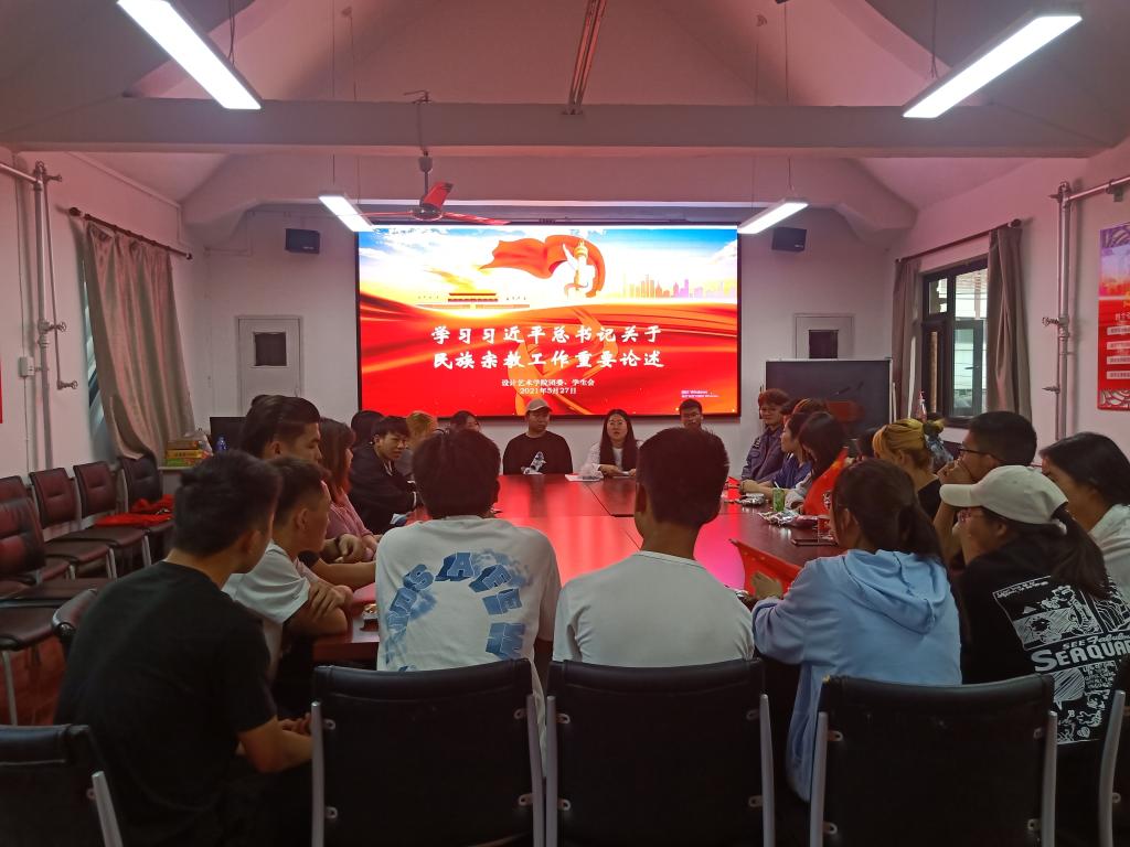 5月27日,为响应民族团结月,促进各民族同学交往交流交融,设计艺术学院于槐园三楼多媒体会议室举办“民族团结一家亲”活动。辅导员宋美瑾,2019、2020级少数民族同学和部分汉族同学参加了本次活动。