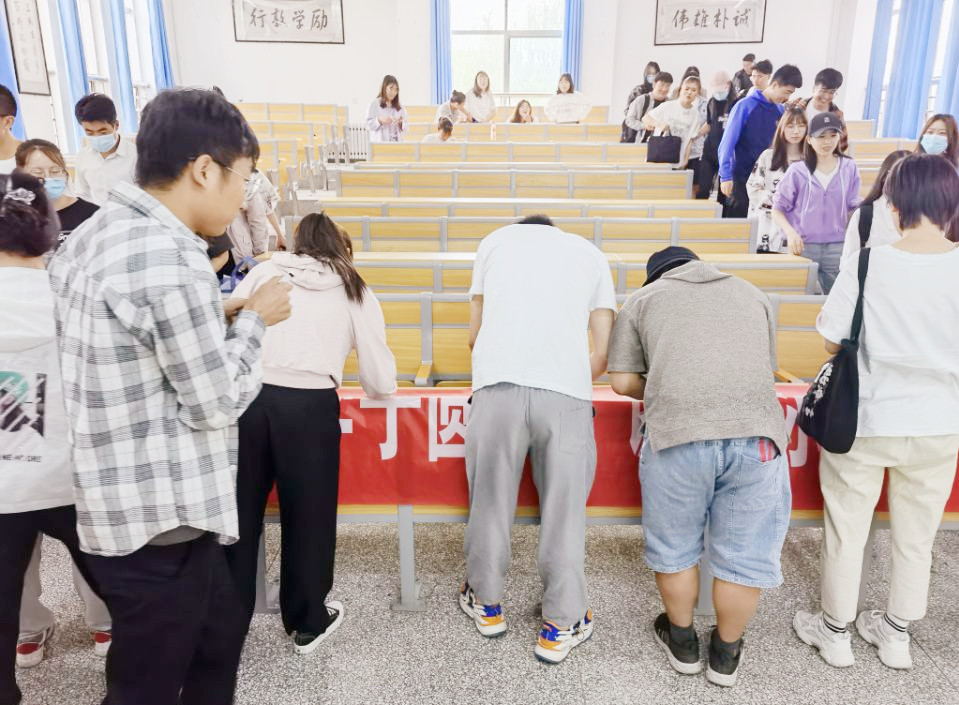 全体学生现场填写了《学生诚信承诺书》并在诚信主题横幅上开展签名活动。