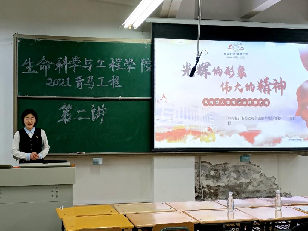 为深入开展党史学习教育,切实做到“学史明理、学史增信、学史崇德、学史力行”,扎实推动党史学习教育走深走实,促进学生中的优秀骨干分子快速成长,生命科学与工程学院团委于2021年61日晚在彭家坪校区观成楼106举行2021年“青马工程”培训第二讲“光辉的形象,伟大的精神”报告会,报告特邀鲁南制药集团“沂蒙精神”宣讲团成员张全恩等一行4人来校宣讲。生命学院党委副书记武军莉、团委书记代莎,生命学院两委会成员八十余人参会,会议由武军莉主持。