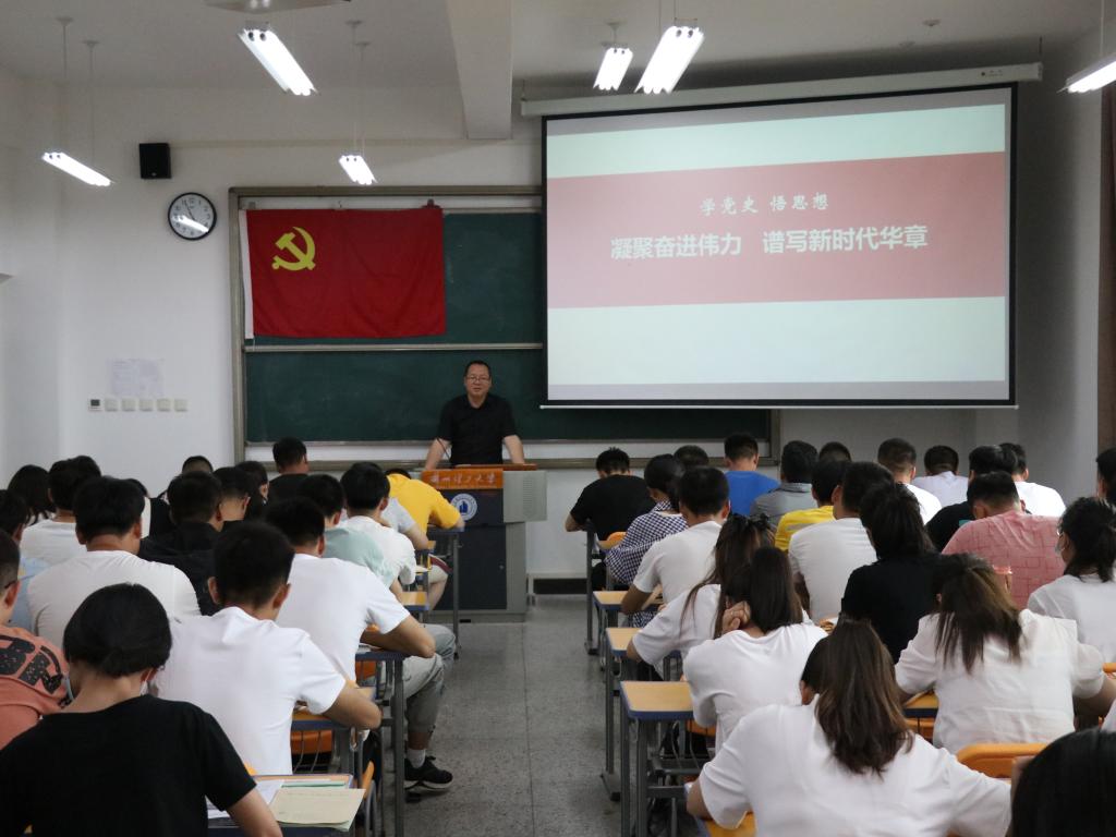 为深入推进党史学习教育走深走实,引导党员进一步学史明理、学史增信、学史崇德、学史力行,掀起学习党史新热潮,6月23日下午,新能源学院党委书记曹立宏以“学党史、悟思想,凝聚奋进伟力,谱写新时代华章”为主题,为学院全体师生党员做了专题党课辅导报告。学院党员领导干部、支部书记将以不同专题,陆续开展党史学习专题党课。6月21日,学院党委副书记为2021届毕业生党员开展了党史学习教育暨党性教育专题党课。