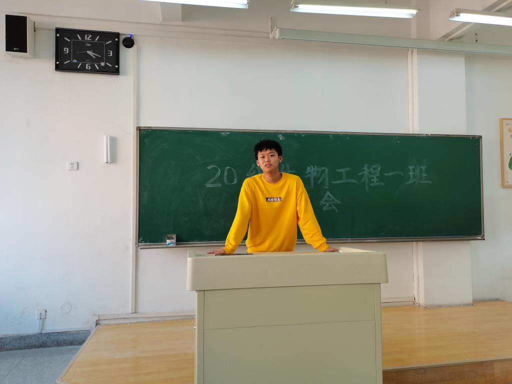 新学期,新气象,学期伊始本班迎来了几位新成员的加入,班会上唐丹首先向同学们介绍了班级里转来的新同学,以及协助班级事务的王芳。而后唐丹针对大一第二学期的班级成绩进行了简要总结,鼓励同学们再接再厉、突破自我。并针对本学期即将开展的创新创业学分认定工作提醒大家尽早行动、认真对待。接着向同学们说明了第一学年班长邢译文由于个人意愿选择退职,班级随即进行新班长竞选,通过同学们的民主投票,确定新班长为张卓越同学。竞选结束后,王昕再次对考研与成绩问题对同学们进行强调,希望同学们不要辜负自己。最后,唐丹就疫情当下的国庆假期出行安全对同学们进行提醒,班会到此结束。