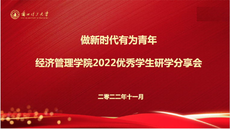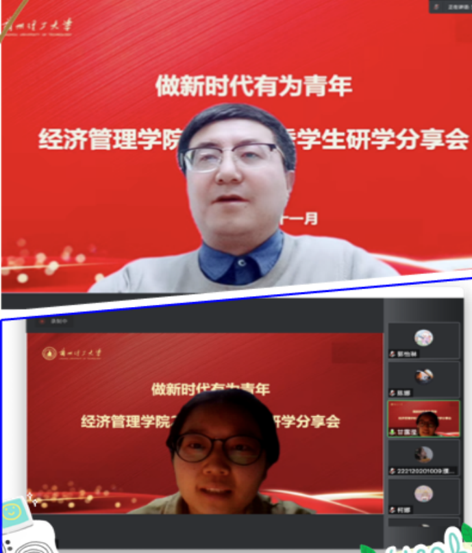 学习党的二十大,争做新时代有为青年,为进一步发挥优秀学生典型引领的作用,在学生中积极发挥学生自我管理、自我教育、自我服务、自我监督的“四自”教育模式,培养德智体美劳全面发展的社会主义合格建设者和接班人。2022年11月,经济管理学院通过腾讯会议成功举办主题为“做新时代有为青年”的优秀研究生研学系列分享会,分享会为期一个月,分三期进行。
