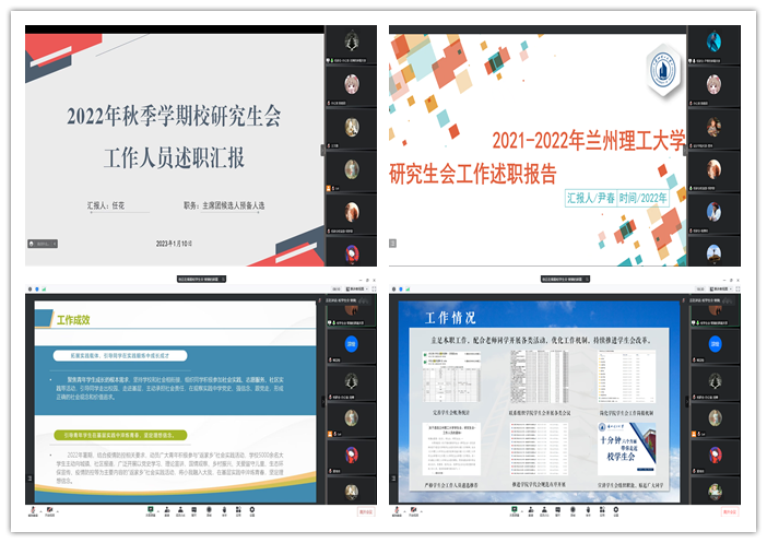 为深入贯彻执行团中央、教育部、全国学联《关于推动高校学生会(研究生会)深化改革的若干意见》文件要求,加强学校各级学生会组织建设,引导学生会组织聚焦主责主业,全心全意服务同学,当好党联系广大同学的桥梁和纽带。1月10日下午,校学生会、研究生会工作人员述职评议大会在线上举行。评议会由学校党委学生工作部部长、学生处处长孙伟国,校团委副书记王文霞,校团委相关负责老师以及各学院学生代表组成。