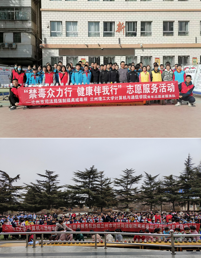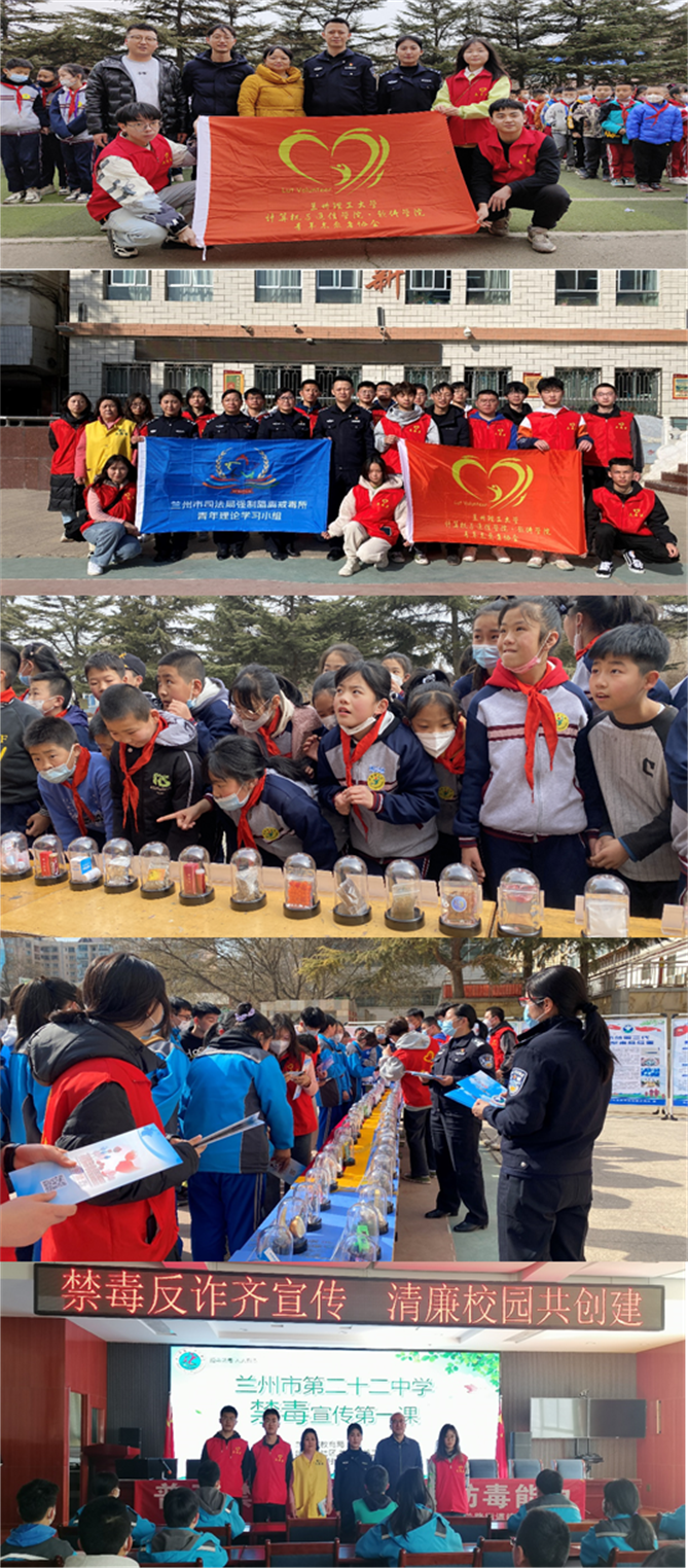 2月28日下午、3月1日下午,计算机与通信学院青年志愿者服务队协助兰州市司法局强制隔离戒毒所在七里河区崔家崖小学、兰州市第二十二中学开展“禁毒教育宣传进校园”志愿服务。参与志愿服务的还有七里河公安分局秀川派出所部分民警、秀川街道以及建兰路街道部分工作人员;七里河崔家崖小学、兰州市第二十二中学师生共一千余人。