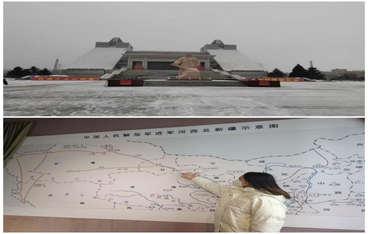 张帅同学怀满腔热血,探访家乡榜样,参观“铁人王进喜纪念馆”,深入了解“铁人”事迹,传承发扬“铁人”精神,立誓努力成为千万“铁人”一员。夏欢同学进入酒泉起义纪念馆,访红色遗迹,学先辈精神,追忆革命先辈的丰功伟绩。作烛微光照祖国