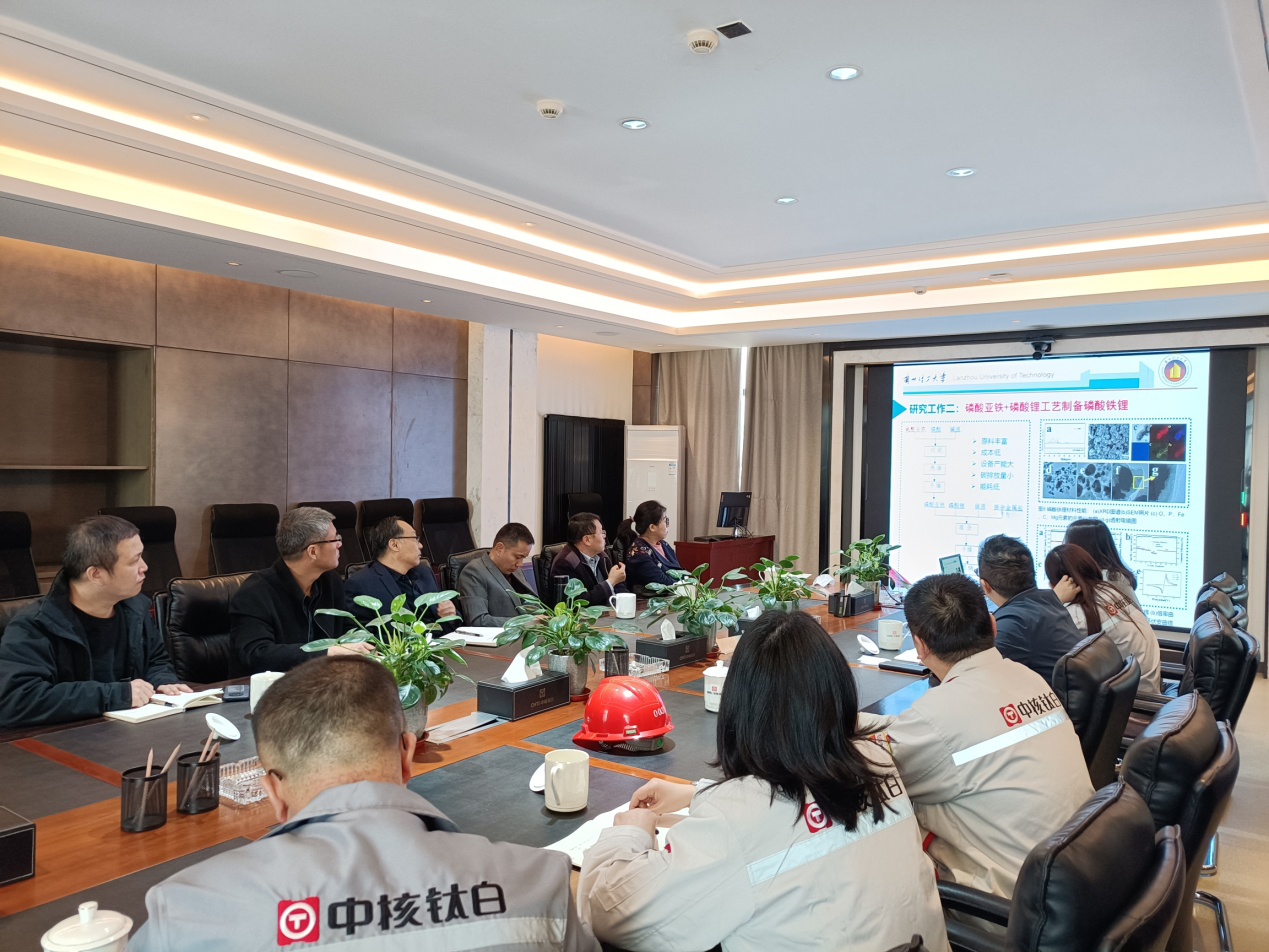 围绕东方钛业10万吨磷酸铁锂项目的建设需求,张庆堂教授、蒙延双教授分别作了题为“磷酸铁锂电池”“磷酸铁锂正极材料的研究进展”的报告,双方就磷酸铁锂制备工艺优化、性能提升、原料稳定性的影响因素等方面进行了深入细致的交流。梁卫东教授代表项目组详细介绍了双方共同承担项目的进展情况和取得的阶段性成果,并提出了下一步工作的方案和详细计划。甘肃东方钛业有限公司谢立纲肯定了项目组取得的阶段性研究成果,建议结合生产实际进行水解动力学的计算并建立模型,从而指导生产实际。提出了东方钛业在科技创新、员工培训、学历提升等方面的计划和需求。我院院长徐仰涛教授希望以项目为依托,在技术服务、联合承担项目、科技创新、员工培训等方面开展全面、深入的合作,为企业新产品开发提供强有力的技术支持。