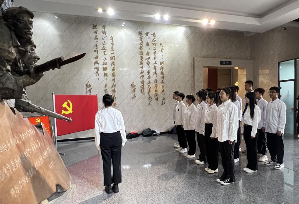 仪式结束后,在讲解员的带领下,全体学生党员参观了兰州战役纪念馆,听讲解员讲述“卫国戍边英雄”陈红军烈士和他的战友们用血肉之躯捍卫祖国领土完整的感人事迹。听完陈红军烈士及其他英雄的战斗事迹后,大家纷纷表示,要以革命先辈和烈士为楷模,时刻把祖国和人民装在心中,牢记初心使命,立足岗位奉献,用行动书写忠诚,用实绩彰显担当,以英雄为航标,砥砺前行。在纪念馆大厅,面对鲜红而庄严的党旗,全体党员举起右手、紧握拳头,重温入党誓词。