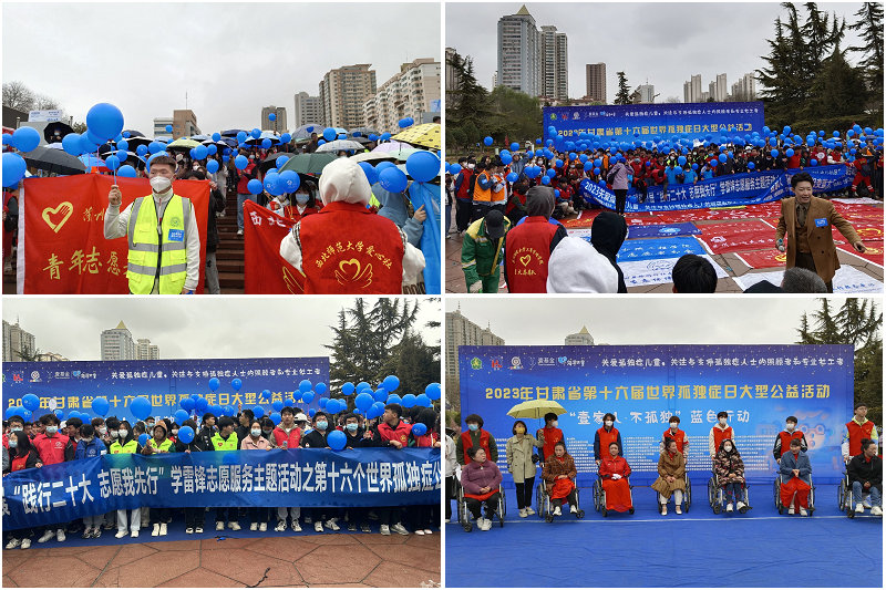 2023年4月2日是第16个“世界自闭症日”。由甘肃省残疾人联合会、兰州市残疾人联合会指导、甘肃省智协等单位主办的2023年甘肃省第十六届世界孤独症日大型公益活动于4月2日在西湖公园开展。设计艺术学院乐翼青年志愿服务队同兰州各高校青年志愿者一起参与本次活动。
