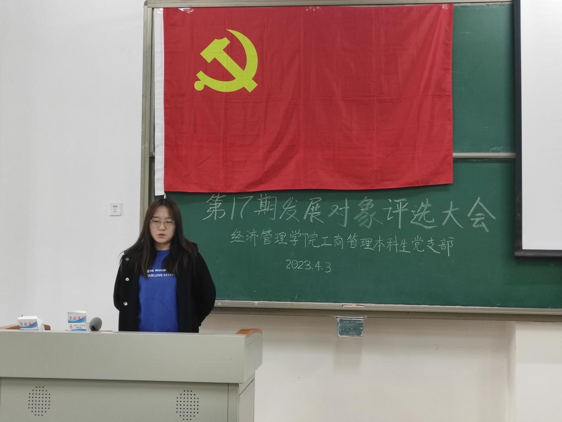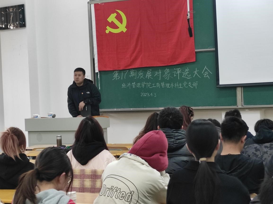 为认真做好2023年发展党员工作,从源头上保持党员队伍先进性、纯洁性,4月3日,经济管理学院工商管理本科生党支部按照上级工作安排,组织全体党员召开了民主推荐第17期党员发展对象会议,会议由支部书记张凡主持。大会通过选举监票人、计票人名单,通过民主评议、民主推荐等规范流程,推荐出2023年党员发展对象6名。