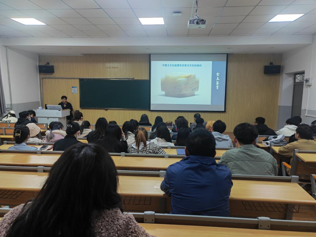 随后,张新红副院长讲话,他表示对创新创业实验班未来的发展充满了信心和希望,并为同学们大致介绍了创新创业实验班的课程及等级分布,介绍了实验班的授课规划和后期举办的各类比赛,调动了同学们的积极性。他强调:“将地域文化融入创新创业作品,因地制宜、发扬传承是我们创新课程的目标。”最后,王志钟老师从文物鉴赏的角度切入,向同学们介绍了中国玉文化的起源及甘肃玉文化的地位,给同学们上了第一堂 “古玉鉴赏”课。