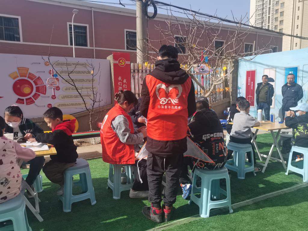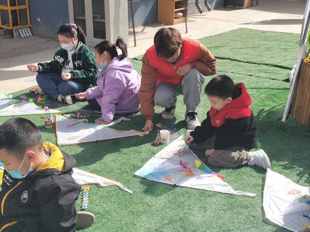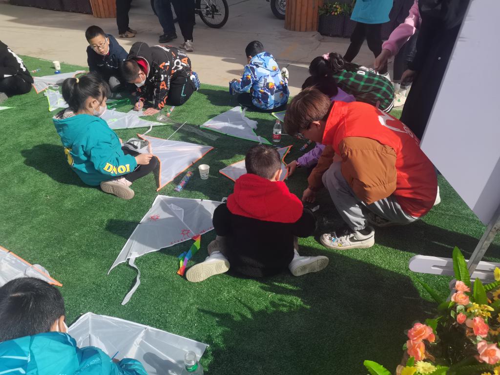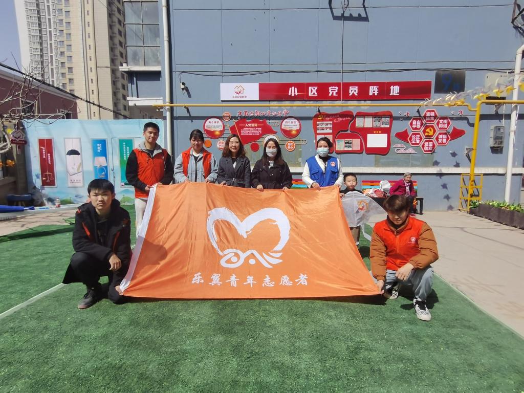 4月8日上午,设计艺术学院乐翼青年志愿者服务队五名青年志愿者前往光华街社区辅助社区志愿者们开展“筝筝纸鸢 趣绘春日”活动。