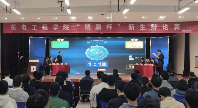 4月9日,机电学院2023年“鲲鹏杯”新生辩论赛在彭家坪校区大学生活动中心落下帷幕。学院团委老师、2022级和2021级辅导员及新生班级代表约400人参加了活动。