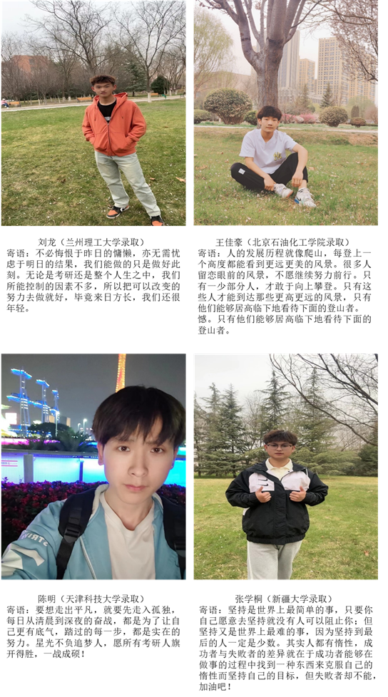 经过一年的备考,他们收获最大的不仅是全宿舍上岸的圆满结果,还有自己艰辛成长的过程,不管是对专业知识的学习还是自己的抗压能力,都有了巨大的提升。(撰稿:范文广 审稿:穆龙)