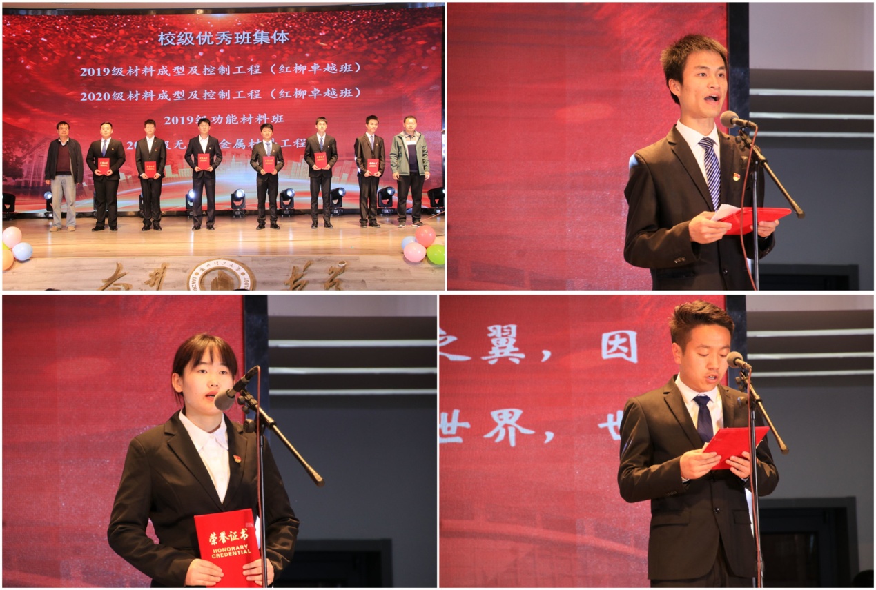 学风建设表彰大会在庄严的国歌声中拉开帷幕,表彰现场为国家奖学金、国家励志奖学金、甘肃省三好学生等学校学院各类先进个人与集体进行颁奖。同时宋昊天、李小虎、杜海洋、许启勇、朱书萍、石贵田六位优秀获奖者代表上台发言,他们激励全体学生感念师恩、努力奋进,牢记并践行材料学子“团结、求是、拼搏、攀登”的院训。颁奖结束后,学院党委书记李元东做主题为“优秀榜样引领,树牢理想信念之基;青年不懈奋斗,稳驾成长前进之舟”的讲话并为2022级新生赠《榜样》一书。他讲到,青年学生一代生逢其时、肩负重任,学院全体师生同舟共济、众志成城度过了过去一年,大力弘扬“奋进求是”校训,主动参与学院各类工作,在艰难的时期仍然涌现出一批思想端正、品质优秀、能力卓然的先进集体和个人,表彰他们很有必要。同时李元东对材料学子寄予殷切期望:要怀抱梦想,脚踏实地,敢想敢为,做有理想、敢担当、能吃苦、肯奋斗的新时代青年大学生。希望广大学生在以后的学习生活中做优良学风、班风的倡导者和实践者,奏唱“请党放心、强国有我”的青春最强音。