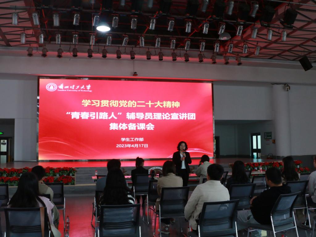 为进一步提高“青春引路人”辅导员理论宣讲的准确性,优化宣讲过程,提高宣讲水平。4月17日上午,学工部在兰工坪校区大学生活动中心举行“青春引路人”辅导员理论宣讲备课会,学生工作部副部长李荣华,马克思主义学院老师以及“青春引路人”辅导员理论宣讲团全体成员和学工部干部参加了备课会,会议由李荣华主持。