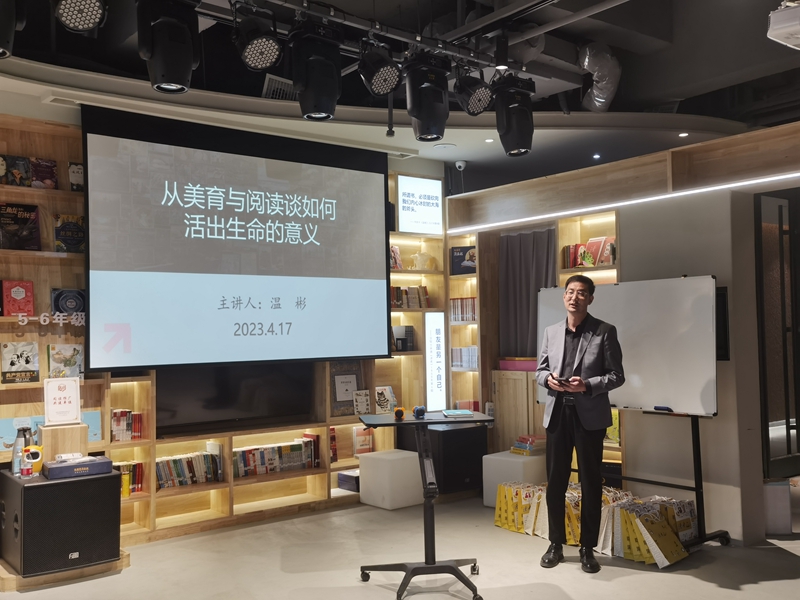 分享会上,吴双芹、李胜利、何延华三位文学院的老师及读者出版集团温彬老师给参加现场活动的四十余名教师代表分享了个人的读书感悟,并推荐了个人读过的“好书”。吴双芹老师声情并茂地讲述了《人世间》中周志刚一家人生跌宕起伏的故事,“认清‘人世间’的真相,依然爱它!”。李胜利老师引经据典、旁征博引,分享了所读唐世平著作《国际政治的社会演化:从公元前8000年到未来》,他通过书中人类学、进化生物学和国际关系诸学科的知识,以三次历史性的体系变迁的脉络讲述了人类社会从公元前8000年到未来的发展进程,让大家了解了通过阅读去探讨国际政治问题的新方法。何延华老师先后结合了自己的投稿和写作经历,与大家分享了她的写作感受和收获。随后,读者出版集团温彬老师以《从美育与阅读谈如何活出生命的意义》为题进行了交流分享。分享点明主旨:美育是德育的基础和归宿,美育让我们真正热爱生活,美育教育最好的方法是阅读教育,阅读是人类认识世界、了解世界、发展思维,获得审美体验的重要途径。精彩的分享、互动交流的热烈气氛、分享者深情并茂不乏深度的演讲,博得了大家阵阵掌声。