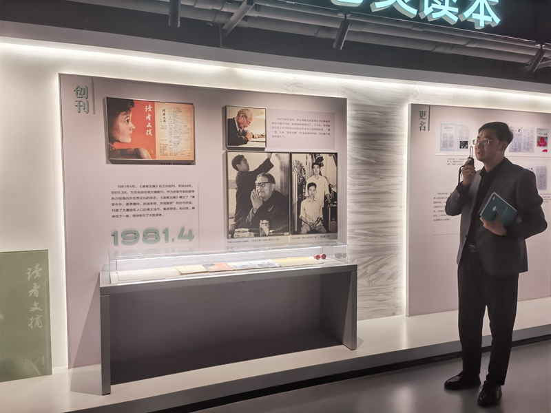 在当天的阅读分享会前,参与分享会的教师代表在读者杂志社品牌发展部主任温彬的陪同讲解中,参观了读者博物馆。通过了解我省第一文化品牌《读者》杂志发展历程,看到我省文化工作者克服困难、坚守初心使命,赓续努力推动精品出版、服务书香社会建设、发展文化创意产业等方面所做的成绩。也体验到了新时代读者出版集团数字出版与媒体融合发展转型的成果,感知到了读者集团风风雨雨一路走来积淀的深厚文化底蕴和精神财富。