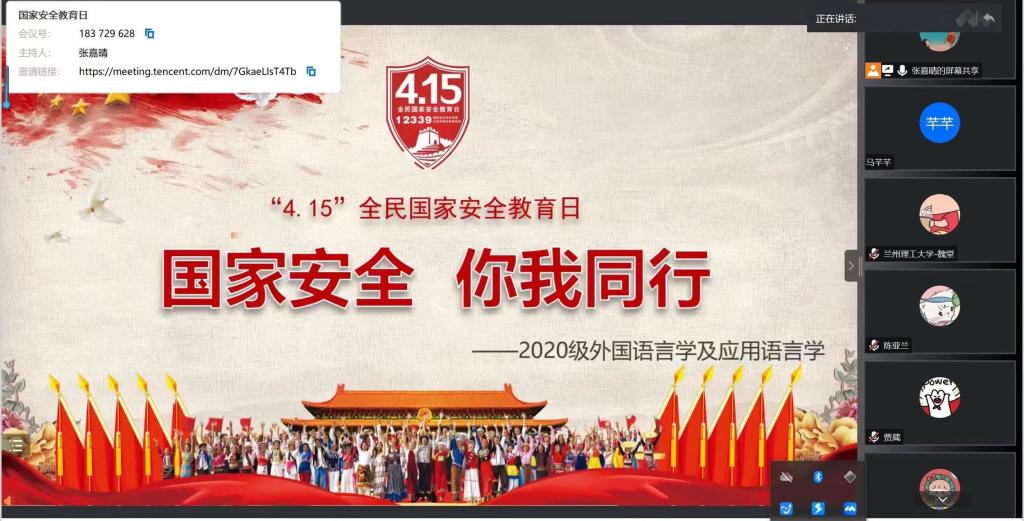 4月15日-21日,外国语学院全体研究生通过线上线下相结合的方式开展了全民国家安全教育日主题教育活动。