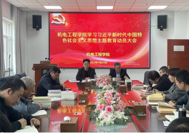 4月24日上午,机电工程学院学习贯彻习近平新时代中国特色社会主义思想主题教育动员大会在学院会议室举行。学院全体党委委员、支部书记参加了此次会议,会议由学院党委书记王正民主持。