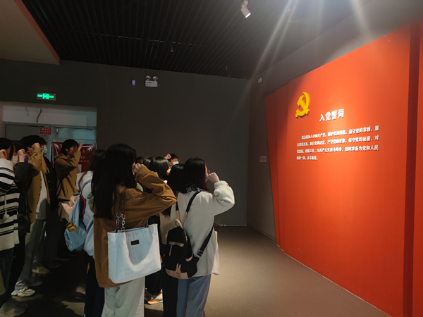 在讲解员的带领和讲说中,党员首先参观了由五个单元——火种篇、抗争篇、铁流篇、激荡篇和曙光篇组成的“红色甘肃”展馆,展品记载了无数共产党员在甘肃运筹帷幄、浴血奋战、前赴后继的战斗历程,回顾了风起云涌的革命年代,南梁烽火的燃起、陕甘根据地的创建、红军长征胜利会师、八路军驻甘办事处的贡献、甘肃全境的解放等革命历史。随后,学生党员有序参观了奋进新时代主题成就展等其他展馆,现场深入了解甘肃深厚的历史文化底蕴。最后,党员在党旗前进行庄严宣誓。